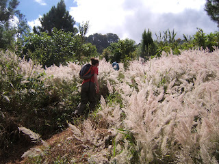 On arrival in Zomba (which was the capital of Malawi until the 1970s and has a fanstastic building called State House for the President when he visits – the building has turrets and an army barracks near by!). We were accosted by a bloke ‘Steve’ wanting us to use his Taxi to get up the mountain. When we explained that we were crazy asungu and wanted to sweat our way up through the jungle he took us to meet his mate ‘Doctor’ (“Doctor by name, not profession”). It is advisable to take a guide if you are white to avoid ambush and extortion – a rare occurrence but worth avoiding. After 5 mins of haggling we got Doctor down to a reasonable price and headed off with him (via his house to get his donated Merrell trainers, and the army barracks to drop off the car he was borrowing from his soldier boss). Leaving the barracks we headed up a newly tarred road and onto the ‘potato path’ – so called as locals grow potatoes on the cool, damp Zomba Mountain Plateau, and bring them to Zomba market by the fastest route. The path was beautiful, and the weather perfect – mixed sun and cloud, not too hot, a cool breeze at the top. Doctor was a former guide, who now just drives for a living, so was somewhat out of breath but still managed a fair pace. I guess he wanted to put in as little time for his money as possible! (perhaps I’m being overly cynical). He was nice company, not talking too much but providing fairly knowledgeable answers to our questions. We walked through lovely vegetation of long grasses, large flowers and huge trees. The upper reaches of the slopes were very rainforest-like. At the top there is a very expensive restaurant with purportedly great views, along with all sorts of ‘traditional’ tourist tat and some fruit sellers. We managed to avoid all of these by walking on with Doctor, who by now had got the idea that we were not wanting to spend money, and heading to a great view point in the gardens of a cottage on the edge of the plateau. After speaking to the landlady we were allowed to eat our lunch on her steps, while looking out at the wonderful view (you could see across the plains, back to the Blantyre hills and across to Lake Chilwa and Mount Mulanje). I’m sure the views could be even better, as we had quite a hazy day. We decended by a combination of the tar road and the potato path – all in all a lovely walk with lots of butterflies. We also saw a troop of camera shy monkeys on the outskirts of town! Back at Zomba we jumped in another minibus and the fun began again…Safely back though, and more knowledgeable about the minibus business, we had home cooked popcorn (very cheap here) and beer on our patio. Good times!