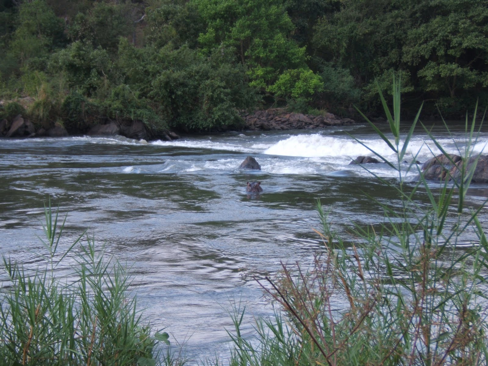 Hippo guarding a beautiful looking play-wave for kayaking!