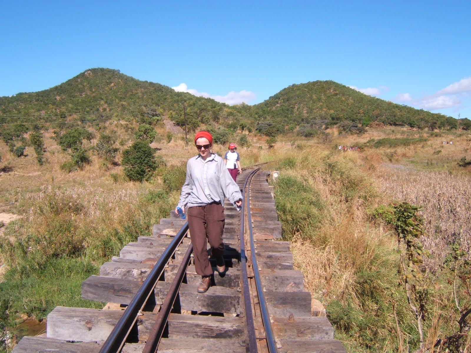 walking along a bit of (disused/infrequently used/not used on Sunday) railway to get to the 2nd tea stop