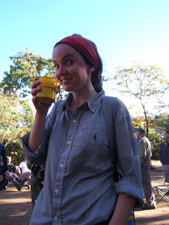 We started off from the centre of Blantyre at 5am on the dot, and walked through the streets in darkness as late night revellers staggered home past us with a rather confused look on their faces. We were a group of probably 20 or 25 at the start, so must have looked quite a sight! The first hill (Michuru) was attacked with vigour as the sun rose, and we were rewarded with great views from the top. Rach and I made it to the top with around 10 minutes to have breakfast, so perfect timing. Then everyone hurried off down the hill to the conservation department car park and a cuppa. After that we had a long flatish walk across the plains (which are inhabited by one of the densest and most complex townships I have yet seen!) to the next tea stop in a wonderful house at the foot of the 2nd hill (Ndirande).