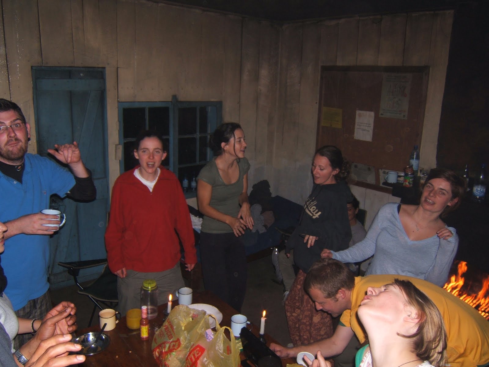 After a slightly delayed pick-up due to a faulty speed-o leading to a speeding fine we arrived at Mulanje town and arranged some porters. Food duties for the weekend had been allocated, and Rach and I only had to do pudding, so we didn’t have much to carry and so we didn’t bother with an official porter…just me! There followed a large amount of faff, which was to recur regularly, but our route was short and steep and after our night’s exertions Rach and I were quite happy to have a wee sit down. Eventually we set off up a new path to me, the Boma (Town) Path. This is one of the steepest routes up to the plateau, but was beautifully varied. The pace was fairly slow due to a mixed group, and so we had plenty of time and breath to chat and take in the views. The chat was great, we had a really fun group. All other trips up Mulanje have been great, but socially this was the most fun! Lots of like-minded people enjoying the fantastic scenery and irreverent company. We passed through the tea estates and rainforest at the bottom, up onto grass and sparse cover of Mulanje Cedars, passed some palm trees in a ravine, then up onto the more typical (and Scottish) alpine grasses and flowers of the higher reaches. The plateau at the top of this very steep path is really rather flat in comparison to other areas, and was a pleasure to walk along to our destination Lichenya hut…Until we arrived at the hut and found it full! Luckily, in this area of the mountain there is another hut around 45 minutes away, so we raised some reserves of energy and headed off (trying to avoid darkness). Our ‘guide’ was fairly useless, and tried to take us a shortcut which inevitably ended up with retracing steps and p*ssing people off. However, just as the last light was fading from the sky, and the last ounce of strength was leaving some of the group, we found the CCAP hut (CCAP = Church of Central Africa Presbytarian or something like that). This private hut comes complete with mattresses and cooking equipment, which in other huts you can only access if you are a Mountain Club Member. There was another small group there, who we tried to interact with but they were generally quite quiet (in comparison to our mob anyway!). Lots of good food, wine (or ‘Goon’ as our Australian friend called it) and dancing to an iPod which had been brought up (the benefits of taking porters) saw us up late into the night dancing and singing away! Great times!