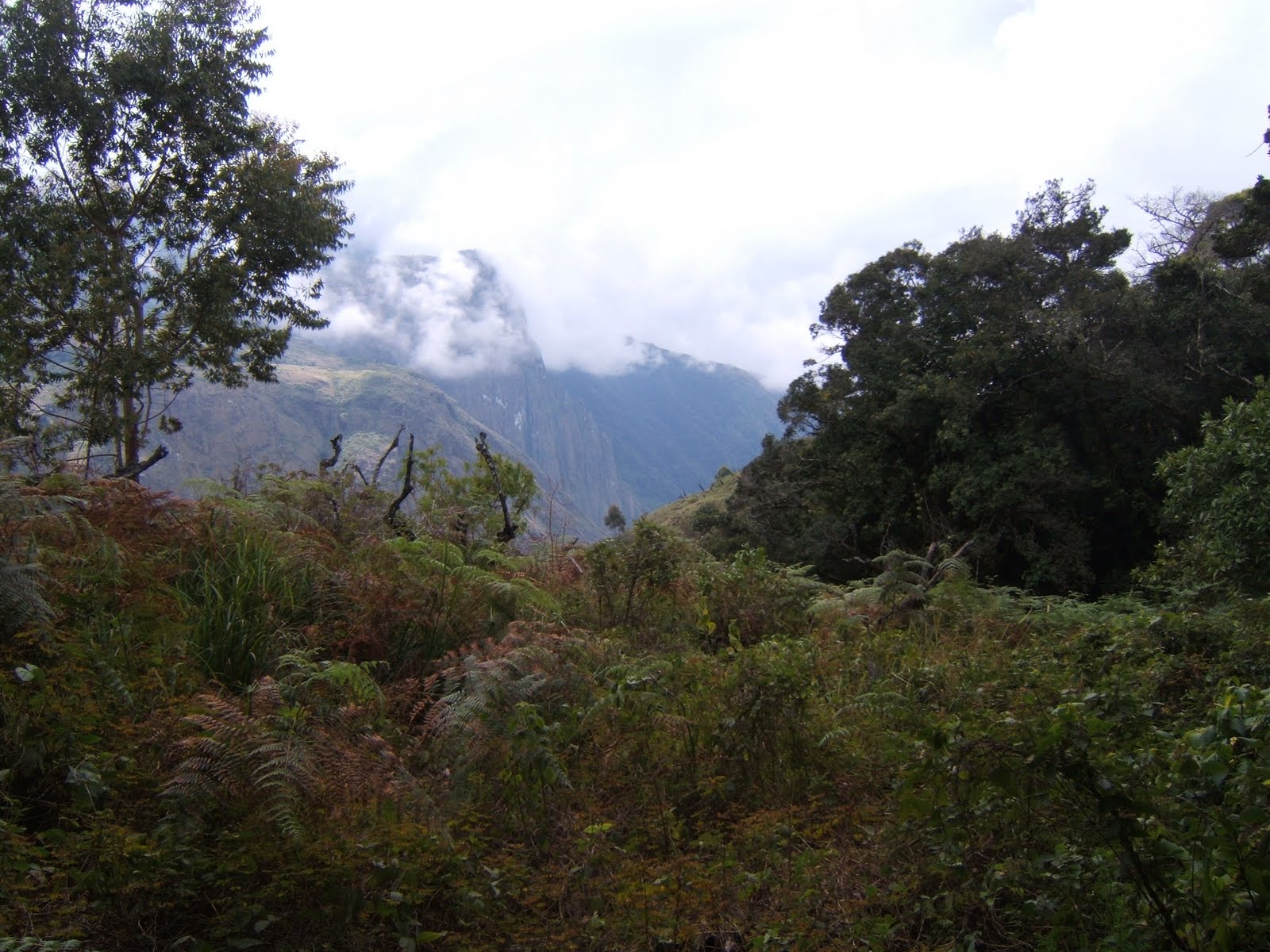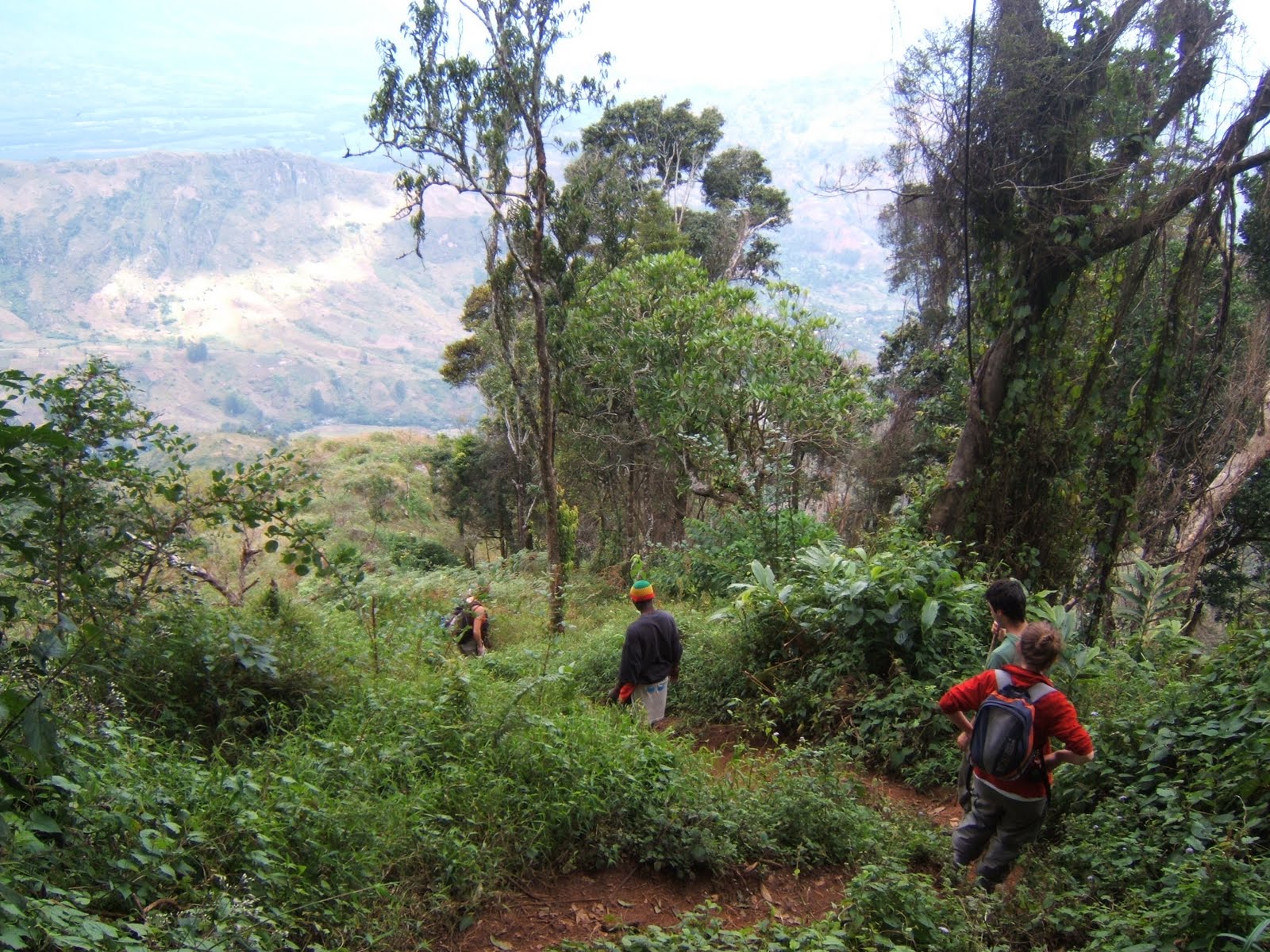 descending a steep, and rather slippery path through the jungle-like vegetation