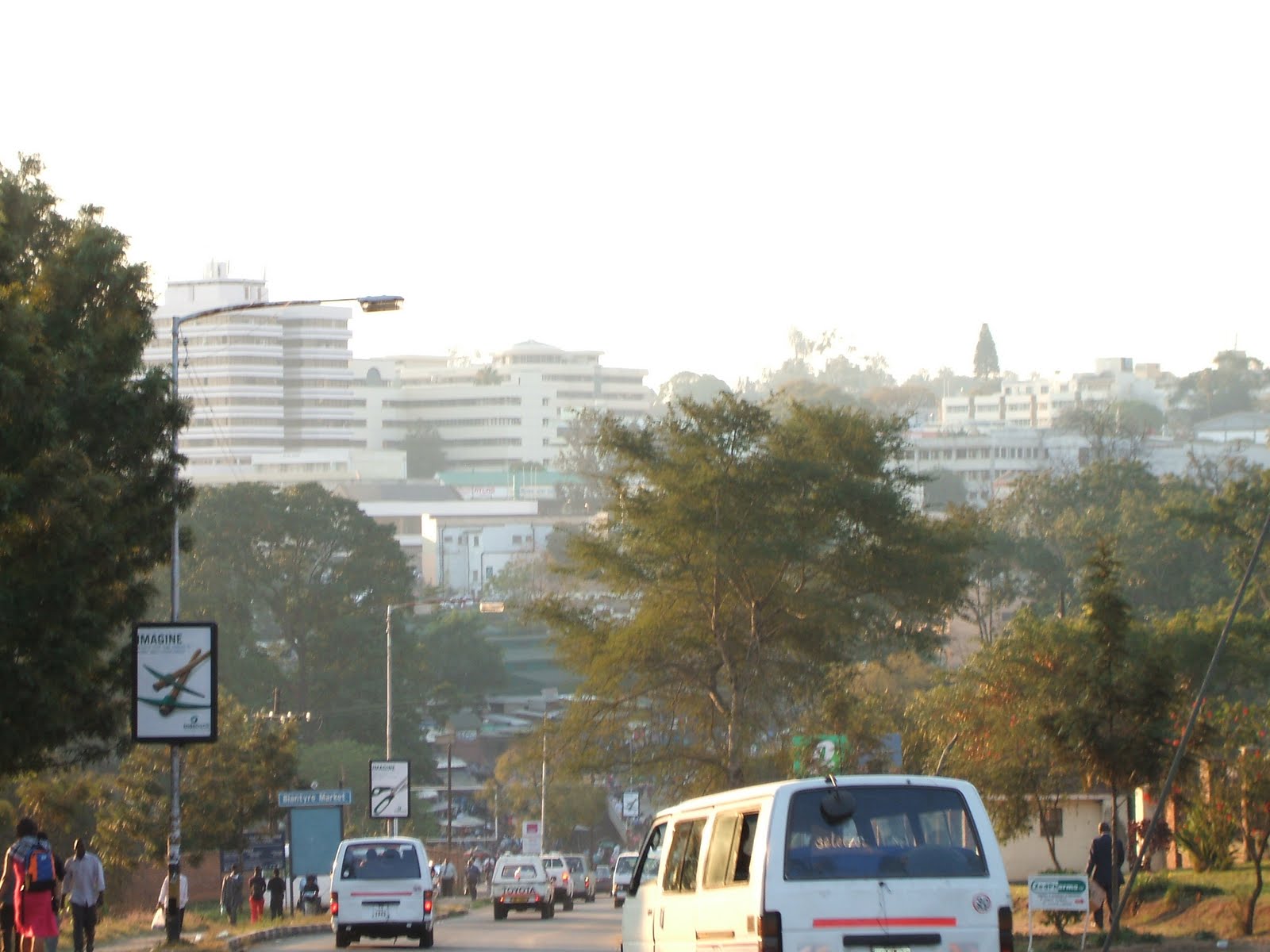 A view from Mandala down into the bustling metropolis of downtown Blantyre at rush-hour