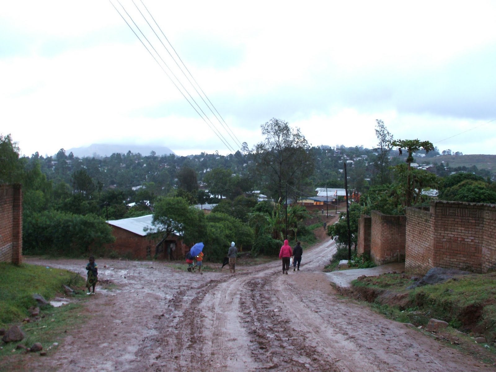 Namiyango in the mud and rain. Spot Rachel in her easy-to-blend-in-to-a-crowd jacket!