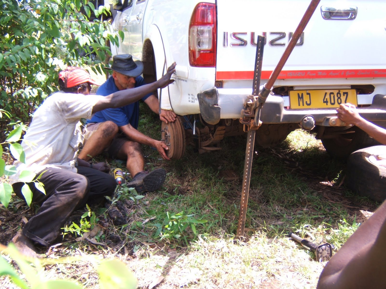 Next morning we packed up and headed back, some getting an early and fast start to try to fix one of the vehicles which had slipped off the track just next to our Friday night accommodation and fairly b*ggered up it’s wheel and axel. The decent seemed incredulously hotter than the ascent, and we arrived back at the tea estate thoroughly dehydrated and sweaty! An hour or so of bodging work and the car could be towed up to park at the estate building, to be collected at a few days later, whenever a mechanic could be arranged.