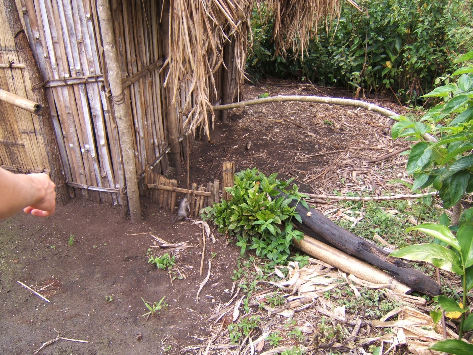 rat caught in a trap outside a hut.i guess he thought he'd be ok as he was in the protected zone...afraid not, buddy!