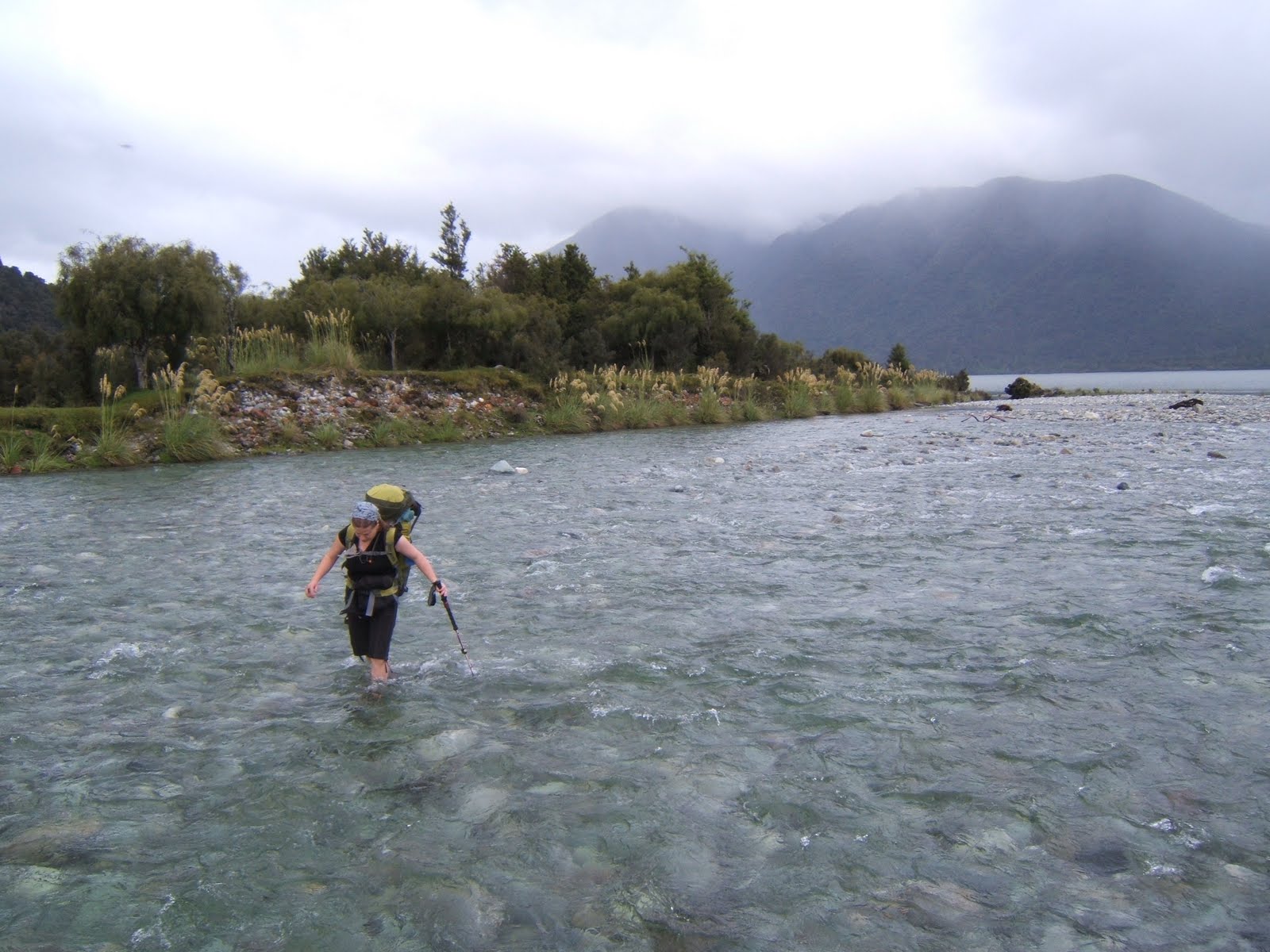 Crossing a side stream in the lower Caples Valley on 3rd Jan