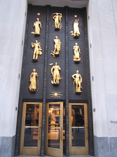 an inlay above a shopfront near the Rockefeller Centre - the original "slippery when wet" warning sign?