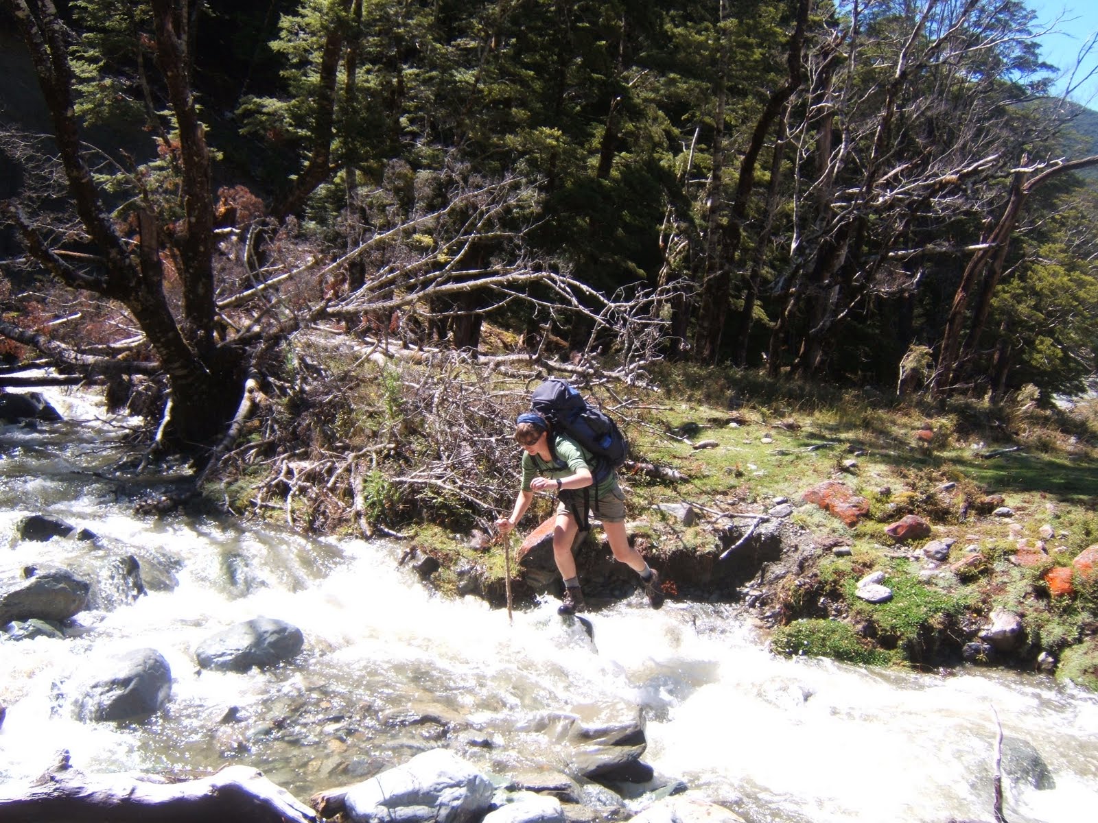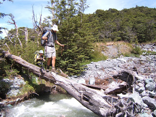 Crossing a side stream in the lower Caples Valley on 3rd Jan
